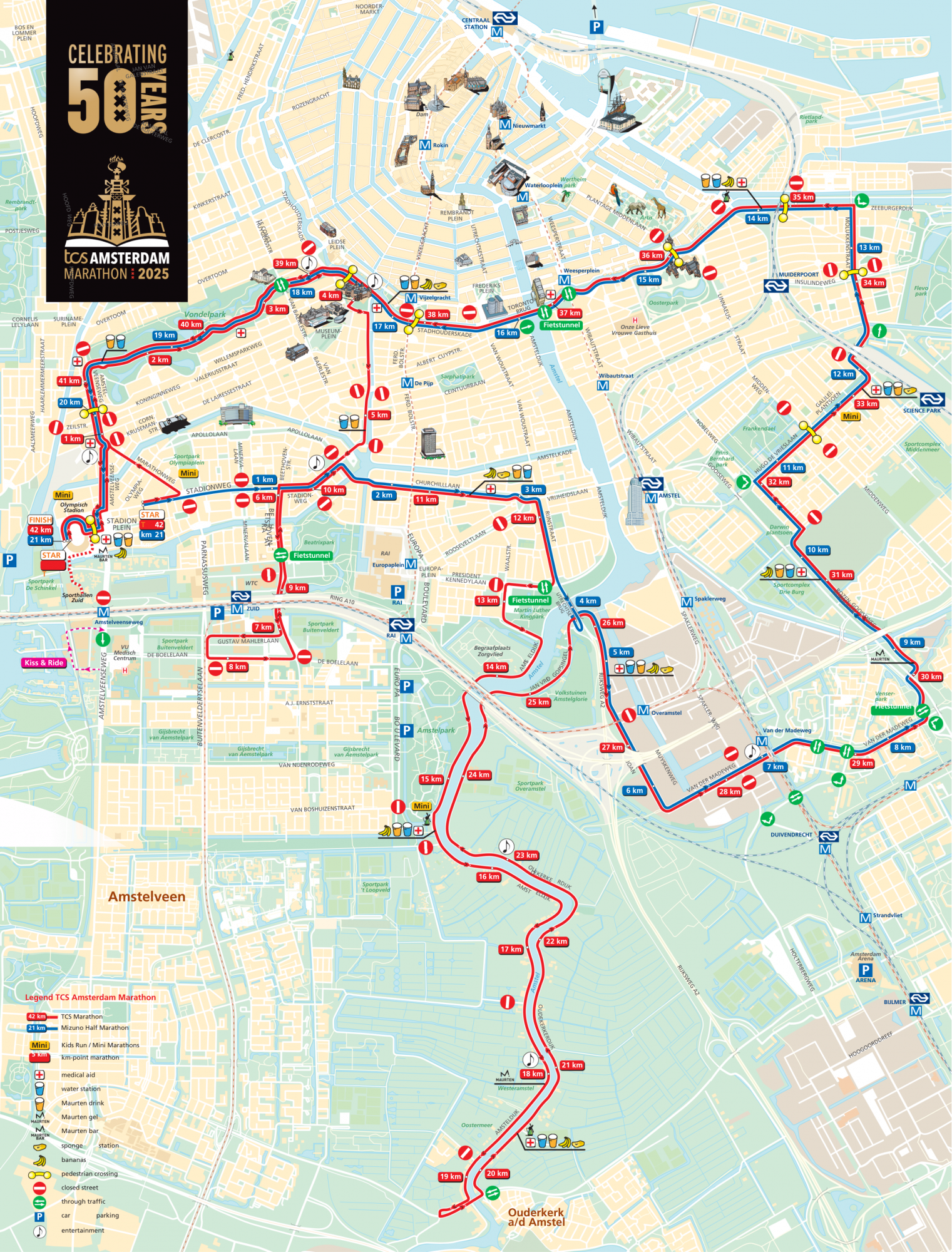 De hoofdafstand tijdens de TCS Amsterdam Marathon is de TCS Marathon. Geniet van wereldstad Amsterdam en loop langs de meest aantrekkelijke passages van de hoofdstad.
